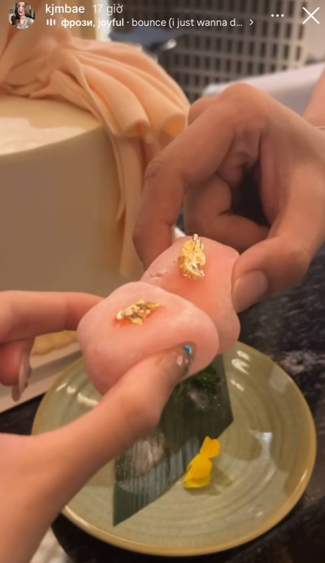 Cô cùng người giấu mặt “cheer” chiếc bánh màu hồng vô cùng đáng yêu.