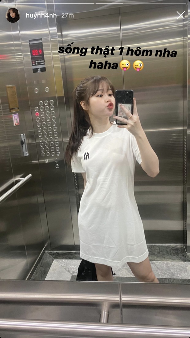 Trong tấm hình Huỳnh Anh đăng tải trên story, trông cô nàng vẫn giữ nguyên được vẻ nhí nhảnh, dễ thương thường nhật. Dù chỉ diện một chiếc váy trắng đơn giản nhưng ai cũng công nhận Huỳnh Anh thực sự nữ tính và rất hợp với Quang Hải. Tuy nhiên, nhìn kĩ hơn thì ô kìa, có điểm gì đó là lạ.
