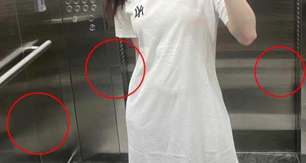 Một vài cư dân mạng tinh mắt đã phát hiện ra cửa thang máy nơi Huỳnh Anh đứng tạo dáng trông không bình thường cho lắm. Cụ thể ở tầm ngang với eo Huỳnh Anh, cửa thang máy bất ngờ bị cong cong, méo méo, nhìn cứ "sai sai". Vì nhìn nó hơi bất hơp lý nên mọi người cũng tỏ vẻ tò mò không biết đó là tình trang nguyên bản của thang máy hay đã có thé lực "thần bí" nào chẳng hạn như photoshop hay filter tác động lên nó nữa. Câu trả lời chính xác có lẽ chỉ có trời biết, đất biết, chủ nhân tòa nhà có thang máy kia biết và Huỳnh Anh biết thôi nhỉ?