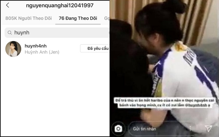 Chưa hết, dạo gần đây dân mạng còn phát hiện Quang Hải thường xuyên like ảnh, thả tim vào những bài đăng của Huỳnh Anh - gái xinh Hà Nội cùng tuổi với Nhật Lê, hiện đang là du học sinh tại Singapore. Tin đồn Quang Hải có tình mới càng được dịp bùng lên khi Huỳnh Anh bị phát hiện mặc một chiếc áo số 19 của CLB Hà Nội - số áo của Quang Hải mỗi khi thi đấu.