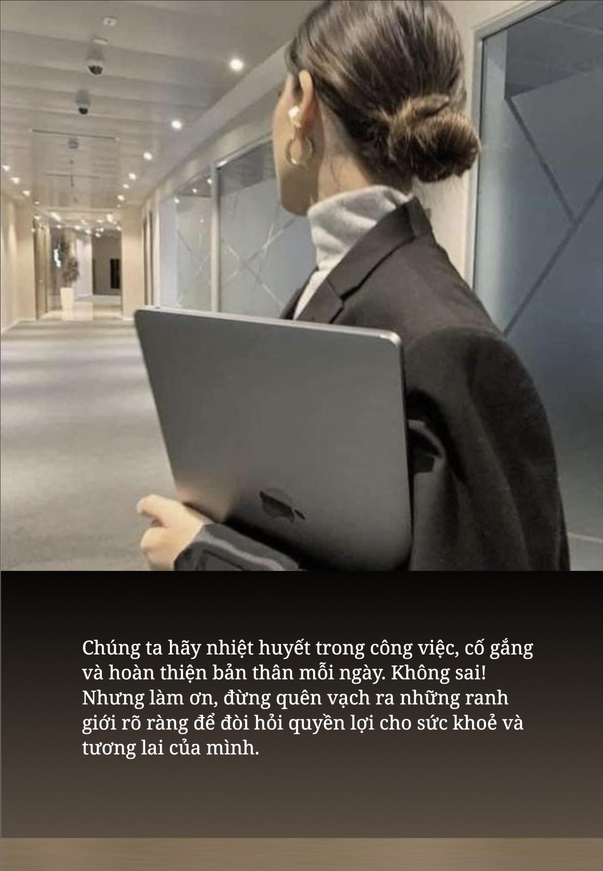 Chúng ta hãy nhiệt huyết trong công việc, cố gắng và hoàn thiện bản thân mỗi ngày. Không sai! Nhưng làm ơn, đừng quên vạch ra những ranh giới rõ ràng để đòi hỏi quyền lợi cho sức khoẻ và tương lai của mình.