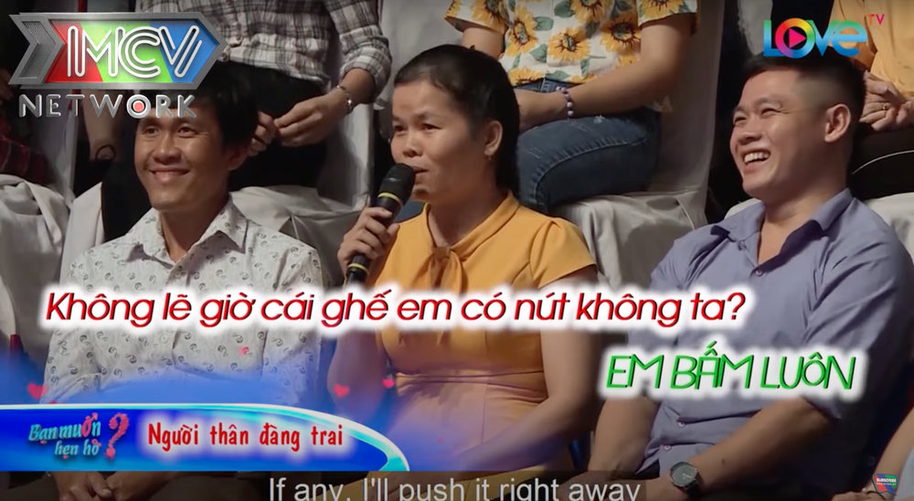 "Không lẽ giờ cái ghế em có nút không ta? Em bấm luôn. Chị dễ thương lắm. Chị nói chuyện rất là thật thà".