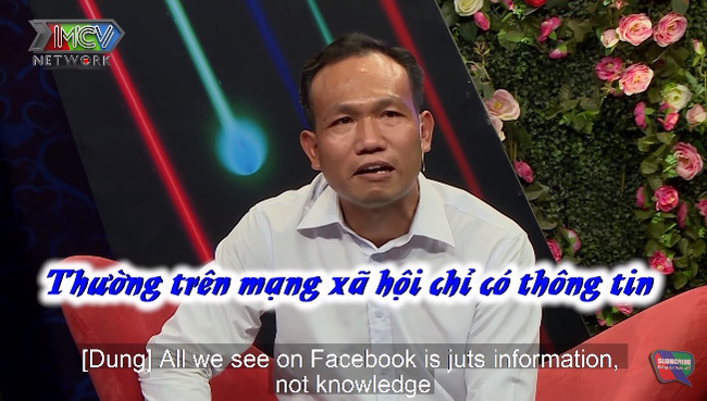 Vừa nghe đến đây, MC Hồng Vân phản biện: "Nhiều khi lướt Facebook cũng là học thì sao?", Thế Dũng trả lời: "Không đâu! Thường trên mạng xã hội chỉ có thông tin chứ không phải là trí thức". Bà mối tiếp tục cho rằng: "Có thông tin thì mình mới cập nhật được chứ", nam chính liền tranh cãi: "Dạ không, thông tin bây giờ gõ một cái là ra, chứ không cần thiết phải lướt Facebook hằng ngày. Vấn đề này có thể tranh luận hơi dài, em nghĩ là mình không cần xoáy sâu vào vấn đề đó".