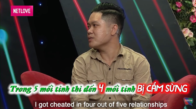 Còn ở bên kia hàng rào, anh chàng Nhật Tân thành thật chia sẻ mình từng trải qua 5 mối tình nhưng đều có cái kết đắng cay. 4 trong 5 mối tình đã qua, anh đều là người bị cắm sừng.