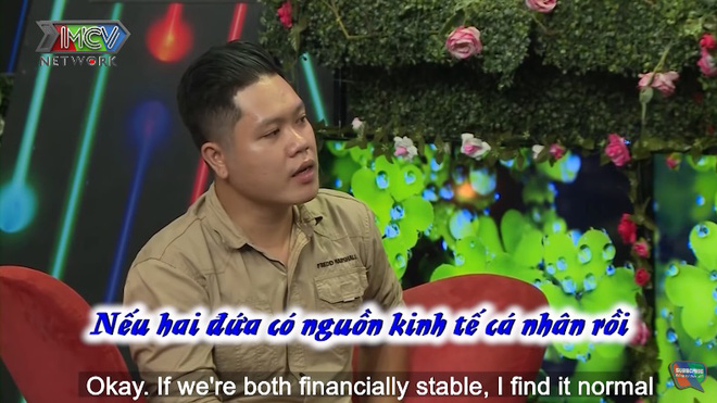 Dù có phần bất ngờ, nhưng Nhật Tân cũng nhanh chóng đưa ra câu trả lời: "Được. Nếu hai đứa có nguồn kinh tế cá nhân rồi thì anh nói chuyện đó là bình thường".