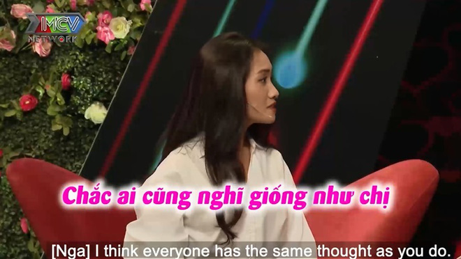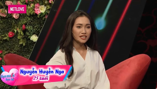 Bên cạnh đó, người bạn ngồi dưới hàng ghế khán giả còn tiết lộ thêm 1 vài điều xung quanh Huyền Nga: "Bạn em ghét con trai hút thuốc. Từ nhỏ bạn em đã thích xem phim Hàn Quốc nên mê đàn ông lãng mạn. Ngoài ra, bạn em tính cách "nhạt", không biết chia sẻ nhiều nên cần một người đàn ông chững chặc, quan tâm và nói nhẹ nhàng. Bạn em sợ người đàn ông nào nói lớn tiếng".