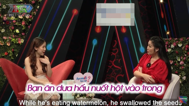 "Bạn nam đầu tiên tính cũng cẩn thận, kỹ tính và khá gia trường. Một hôm rủ em về nhà chơi, bạn đó ăn dưa hấu mà nuốt luôn hạt vào bụng. Rồi tới chừng mà đi chơi với em ở Thảo Cầm Viên thì em lại thấy bạn nhả hạt dưa hấu ra. Em cảm giác em không có thích lắm. Cái đó cũng là một nguyên nhân thôi", chị Oanh chia sẻ.