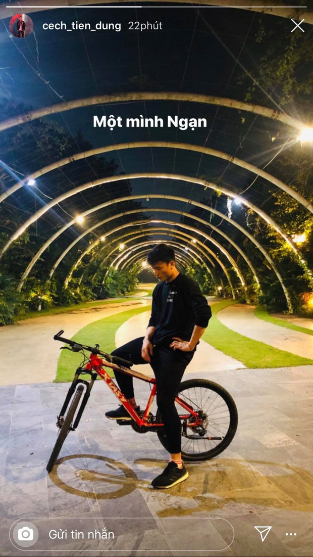 Mới đây, fan hâm mộ của thủ môn soái ca Bùi Tiến Dũng đã được một phen xôn xao tấm hình đang ngồi trên chiếc xe đạp giữa khung cảnh thơ mộng vào buổi tối với dòng chú thích: "Một mình Ngạn" do chính tay anh chàng đăng tải.
