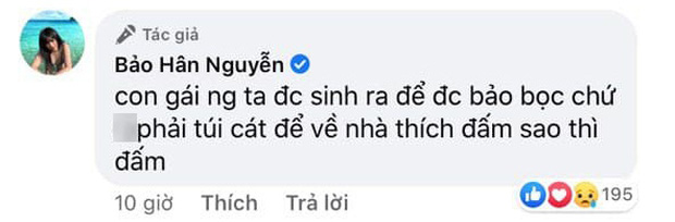 Cô nàng cũng để lại một bình luận cực căng: "Con gái người ta sinh ra để được bao bọc chứ, phải túi cát để về nhà thích đấm sao thì đấm". Không biết chuyện gì đang xảy ra?