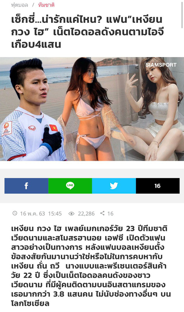 Báo Thái đưa tin về bạn gái mới của Quang Hải.