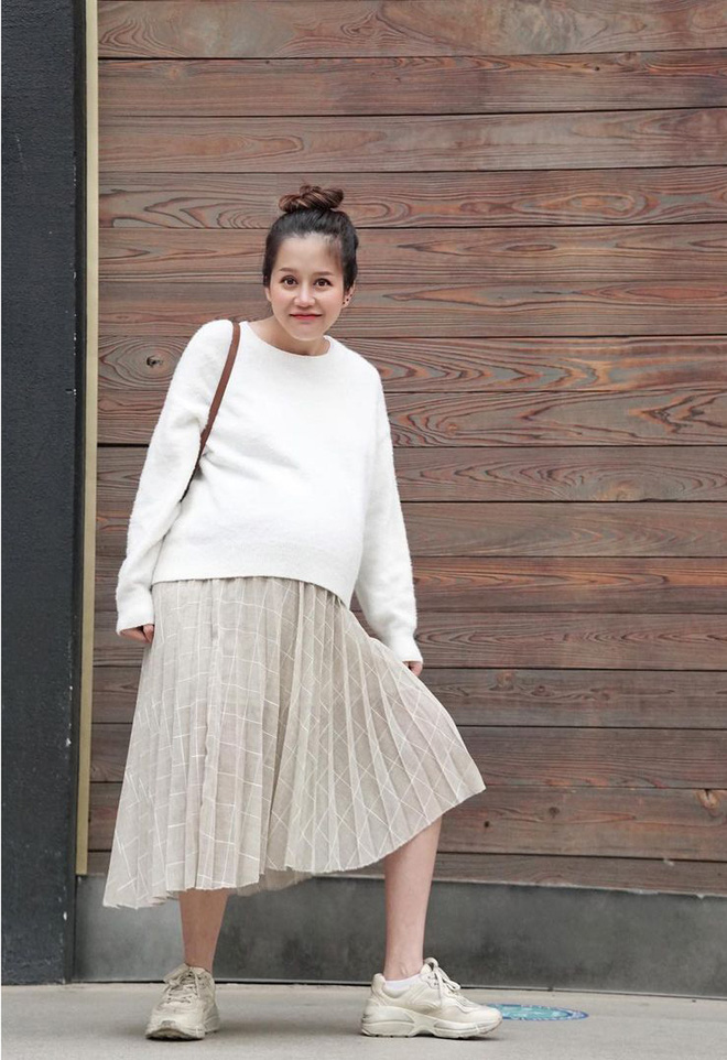 Bầu vượt mặt nhưng Trang Lou vẫn giữ nhan sắc đỉnh cao cùng thần thái rạng ngời. Cơ thể cô cũng rất cân đối, tay và chân khá nhỏ so với nhiều mẹ bầu khác.