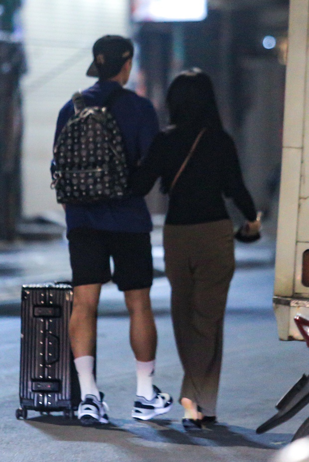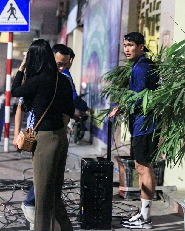 Trung vệ Huỳnh Tấn Sinh được vợ đứng chờ bên ngoài sân Hàng Đẫy.