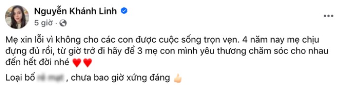 Ngày 6/6, chuyện tình cảm của Bùi Tiến Dũng và Nguyễn Khánh Linh trở thành đề tài được bàn tán xôn xao cõi mạng. Nguồn cơn của sự việc bắt đầu bằng status cực căng trên Facebook bà xã nam cầu thủ. Theo đó, tài khoản facebook tích xanh của bà mẹ 2 con chia sẻ: "Mẹ xin lỗi vì không cho các con được cuộc sống trọn vẹn. 4 năm nay mẹ chịu đựng đủ rồi, từ giờ trở đi hãy để 3 mẹ con mình yêu thương chăm sóc cho nhau đến hết đời nhé. Loại bố **, chưa bao giờ xứng đáng".