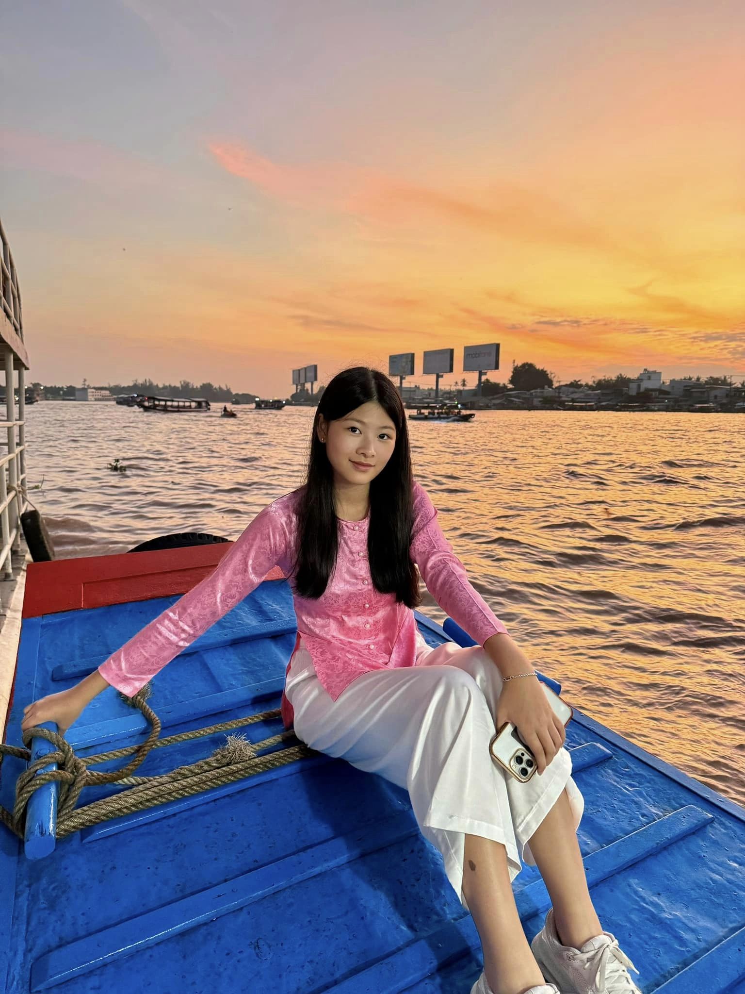 Cô chia sẻ: “Thời gian trôi nhanh quá, mới đây cô gái ấy đã tròn 15 tuổi. Nhớ mới ngày nào bé tí, miệng cười quai xách lẫm đẫm theo ba mẹ, giờ lớn đùng. Chúc mừng sinh nhật chị hai An Nhiên”.