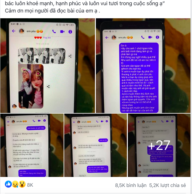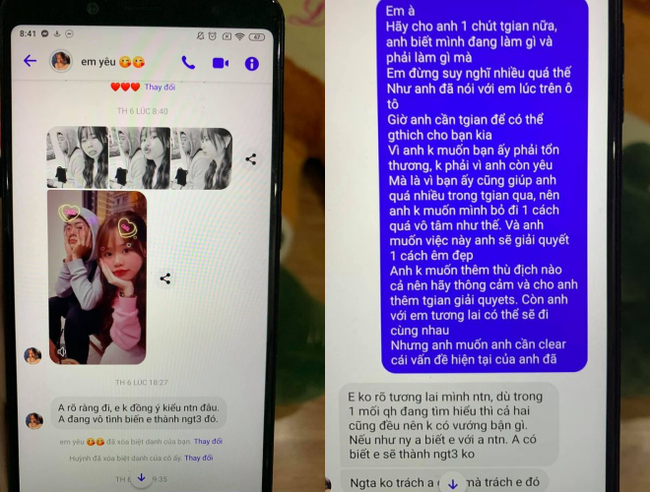 Đính kèm với bài tố chính là những dòng tin nhắn của Q. và Huỳnh Anh. Q. đã lưu tên của cô là “em yêu” như một cách khẳng định rằng mình và Huỳnh Anh đang trongmột mối quan hệ tình cảm. Huỳnh Anh biết Q. có người yêu nhưng vẫn muốn chen chân vào.
