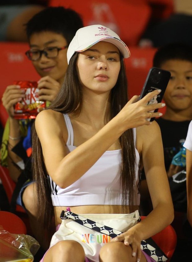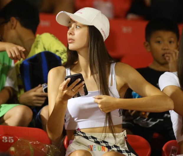 Nàng WAG sinh năm 2000 diện đồ cá tính, áo để lộ phần cổ phía trên và cũng khoe trọn vòng eo thon gọn. Vợ Bùi Tiến Dũng cũng đội thêm mũ rất năng động. Xuất hiện trên khán đài Dianka lọt vào ống kính với nhan sắc xinh đẹp. Dù thể hiện mọi sắc thái biểu cảm nhưng bức ảnh nào cũng thu hút.