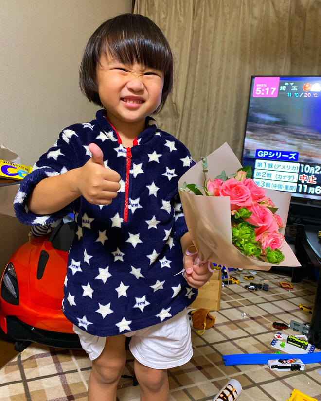 Mới đây, trên trang cá nhân, Quỳnh Trần JP chia sẻ hình ảnh bé Sa đã biết tự tay tặng hoa cho mẹ. Nhìn bó hoa hồng xinh kia, mẹ Quỳnh chắc chắn là người hạnh phúc nhất 20/10 rồi! Dân tình thi nhau vào chúc mừng Quỳnh Trần JP, cũng không quên khen bé Sa ngày càng trưởng thành hơn.