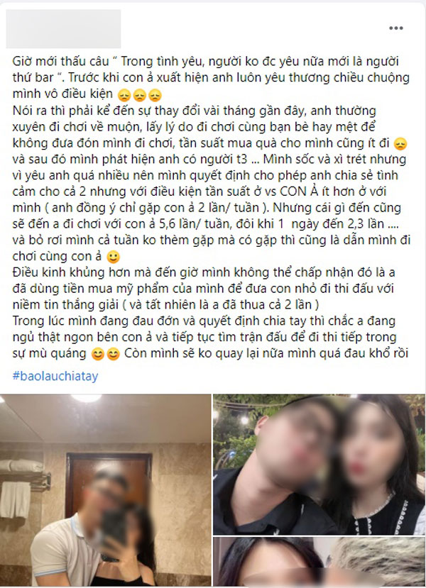 Cứ nghĩ câu chuyện về mối tình ngang ngược này sẽ dừng tại đây nhưng cô gái lại khiến tất cả bất ngờ với cú "cua" ngoạn mục: "Điều kinh khủng hơn mà đến giờ mình không thể chấp nhận đó là anh đã dùng tiền mua mỹ phẩm của mình để đưa con nhỏ đi thi đấu với niềm tin thắng giải, và tất nhiên anh đã thua cả 2 lần. Trong lúc mình đang đau đớn và quyết định chia tay thì chắc anh đang ngủ thật ngon bên con ả và tiếp tục tìm trận đấu để đi thi tiếp trong sự mù quáng. Còn mình sẽ không quay lại nữa, mình qua đau khổ rồi!"