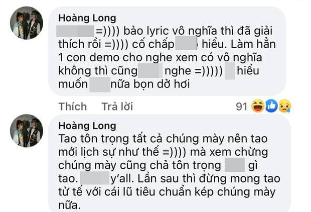 Điều đáng nói, ở ngay phía dưới phần bình luận, MCK đã vào đáp trả không nhân nhượng. Nam rapper thẳng thắn cho biết về việc lyrics vô nghĩa anh cũng đã giải thích, thậm chí làm cả bản demo để minh họa nhưng nhiều người cố chấp không hiểu. MCK cũng cho biết anh từng tôn trọng những người chê mình nhưng không nhận lại được sự tôn trọng ngược lại nên từ nay về sau sẽ không tử tế với những ý kiến trái chiều này nữa.