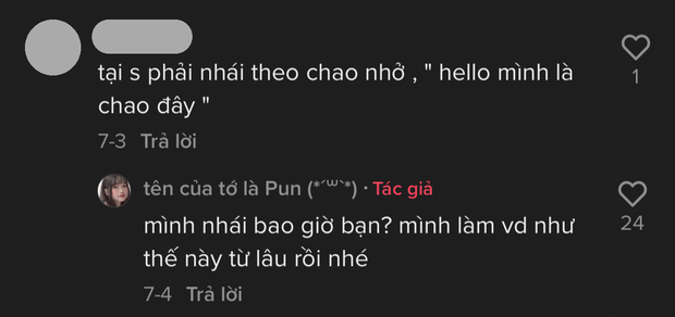 Trước sự việc này, Pun đã làm clip đáp trả. Trong đoạn clip, Pun vừa trồng cây bạc hà vừa nói chuyện bị bắt chước Chao - rich kid 2k3 đình đám. Cô bạn chia sẻ: "Dạo này có rất nhiều comment bảo mình đang bắt chước bạn Chao. Mình đã làm video thế này được gần 2 năm rồi nên mình mong mọi người đừng comment bảo mình bắt chước nữa. Mình đã cố lơ đi rất nhiều lần nhưng mà thật sự nó rất khó chịu đó mọi người".