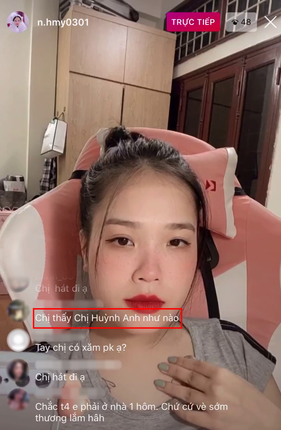 Mới đây, trên sóng livestream của mình, "cô chủ tiệm nail" Huyền My đã nhận được một câu hỏi như vậy từ viewer của mình. Cụ thể, người này đề nghị Huyền My nhận xét về Huỳnh Anh - người yêu hiện tại của chàng tiền vệ tài năng. Thế nhưng, thay vì né tránh hoặc coi như không nhìn thấy câu hỏi này, thì Huyền My lại trả lời rằng: "Các bạn ơi chị không đề cập tất cả mọi người trên live của chị. Chị không có thói quen nhận xét bất kì một ai cả bởi vì chị cũng chưa hoàn hảo nên là các bạn hạn chế những câu hỏi kiểu như là chị cảm thấy người này như thế nào, người kia như thế nào".