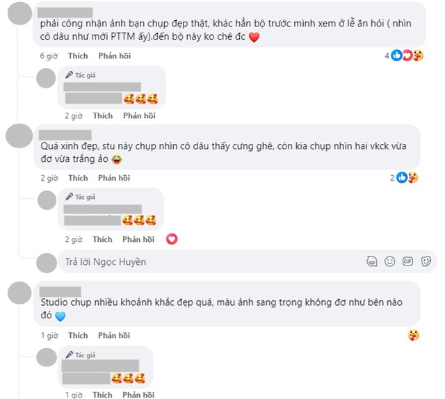 Ngoài ra Fanpage của team chụp ảnh này cũng không trực tiếp phản hồi bằng lời nói khi có người nhắc đến drama giữa phía Quang Hải và studio ảnh cưới cũ. Thay vào đó, team này chỉ trả lời lịch sự bằng icon trái tim như một cách bày tỏ cảm xúc trước sự ủng hộ của mọi người.