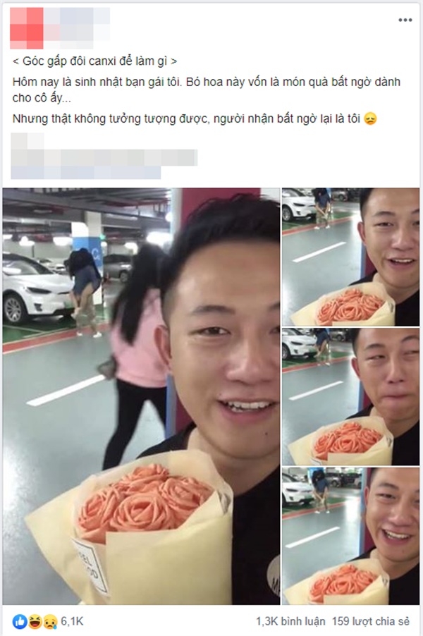 Chia sẻ bức ảnh, chàng trai chú thích rằng: "Hôm nay là sinh nhật bạn gái tôi. Bó hoa này vốn là món quà bất ngờ dành cho cô ấy. Nhưng thật không tưởng tượng được, người nhận bất ngờ lại là tôi".