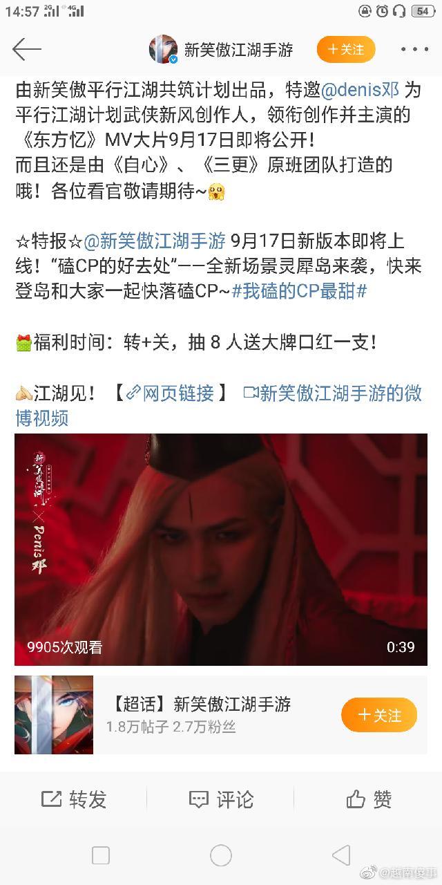 Chiều 13/9, weibo của game Tân Tiếu Ngạo Giang Hồ đã đăng bài xin lỗi về việc mời Denis Đặng xuất hiện trong đợt quảng bá game gần đây của họ. Theo đó, đơn vị phát hành game cho biết, họ "vô cùng xin lỗi" vì sai sót lần này, đồng thời quyết định ngừng hợp tác với Denis Đặng chỉ sau 1 ngày dùng hình ảnh của anh để quảng bá game.