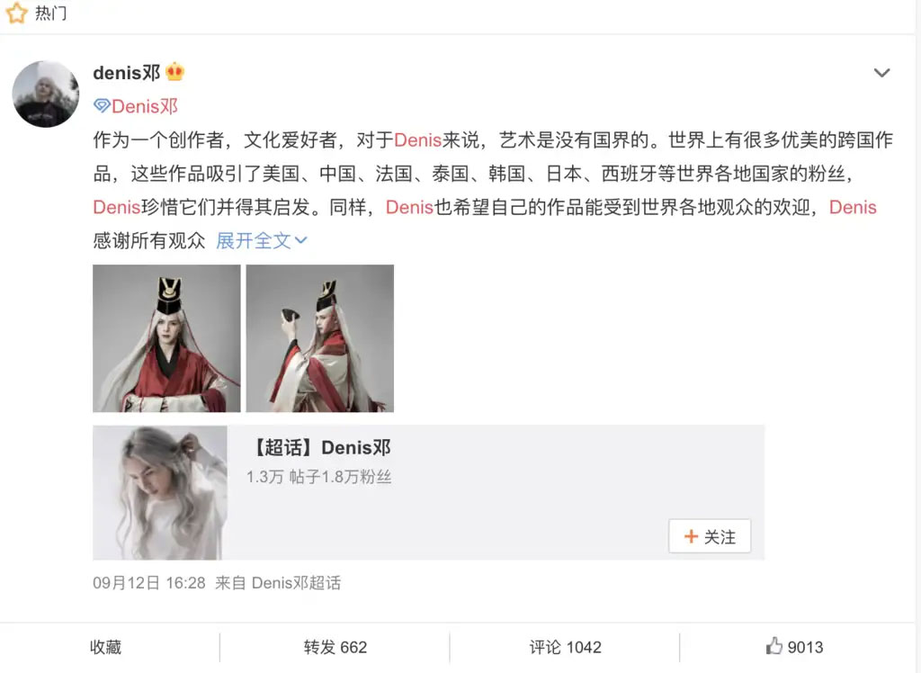Đáp lại chỉ trích từ fan hâm mộ, trang Weibo chính thức của Denis Đặng trên Weibo cũng đăng bài khẳng định chắc nịch rằng "nghệ thuật là không có biên giới" để thể hiện tâm huyết của mình đối với lần hợp tác Trung - Việt này.