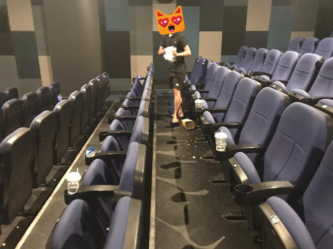 Xung quanh rạp cũng có rất nhiều vỏ hộp bỏng, lon nước,... được bỏ lại tuy nhiên không vung vãi như của nhóm bạn này nên bọn em không chụp nữa mà dọn nhanh cùng nhân viên rồi về. À có duy nhất 1 đôi bạn nữa là dọn đồ của mình còn lại thì không", dòng chia sẻ của tài khoản K.C trên mạng xã hội khiến nhiều người chú ý.