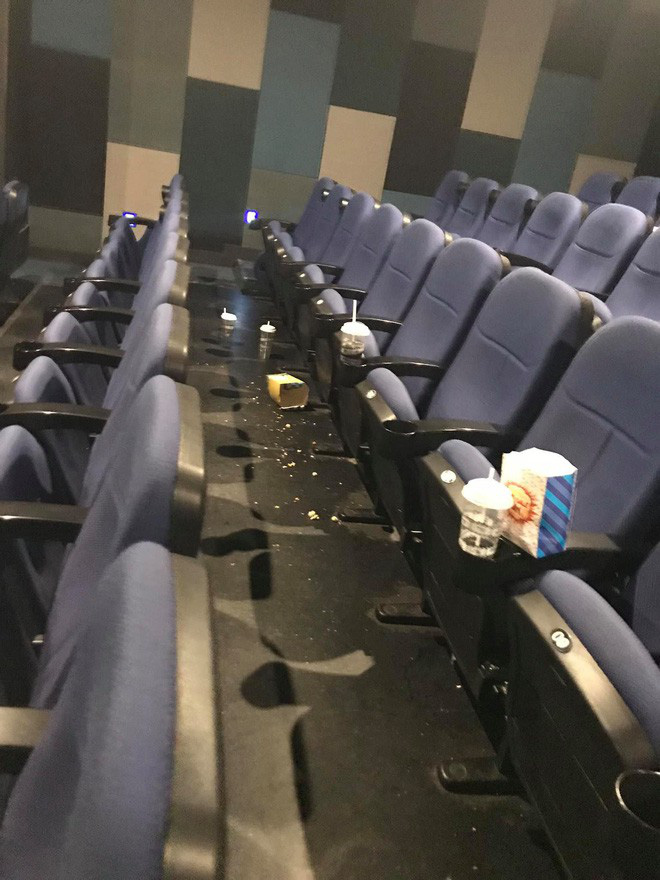 Theo chia sẻ của cô gái, sau khi bộ phim kết thúc một nhóm bạn trẻ cười nói rôm rả đứng dậy bỏ đi để lại toàn bộ rác và bỏng ngô rơi vãi trên sàn nhà mà không có ý định thu dọn gọn lại.