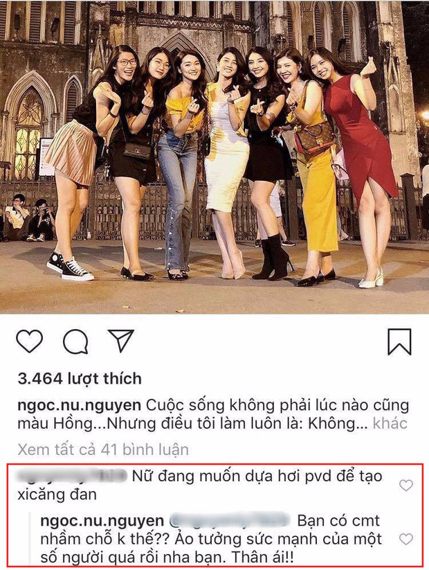 Nhưng đó là chuyện quá khứ, hôm nay lại một câu chuyện khác bị đem ra mổ xẻ. Chuyện là cô nàng đăng một chiếc ảnh hội ngộ chị em toàn hot girl xinh xắn. Nhưng caption lại "đu đưa" ở đâu đó xa cực: "Cuộc sống không phải lúc nào cũng màu Hồng...Nhưng điều tôi làm luôn là: Không quan tâm đến những chuyện màu Đen !!!!! Chào tháng mới ngọt ngào" nên fan Văn Đức cứ phải vô hỏi là cô bạn đang "đá xéo" anh chàng đó à.