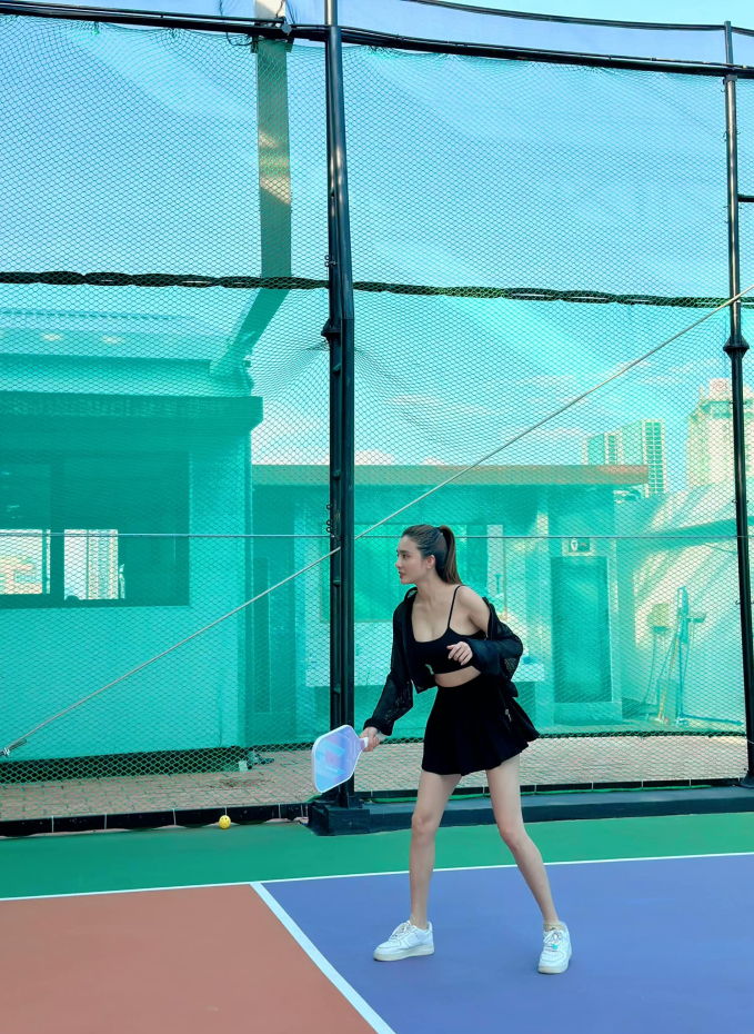 Mặc dù vấp phải lùm xùm nhưng Khánh Chi không đáp trả. Thay vào đó trong buổi tập pickleball gần nhất cô nàng đã nhanh chóng thay đổi trang phục phù hợp hơn.