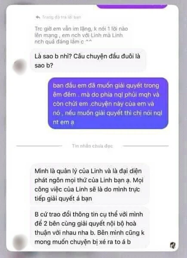 Bên cạnh đó, cô gái này cũng chia sẻ những đoạn tin nhắn được cho là của người quản lý tên T.H của Linh.