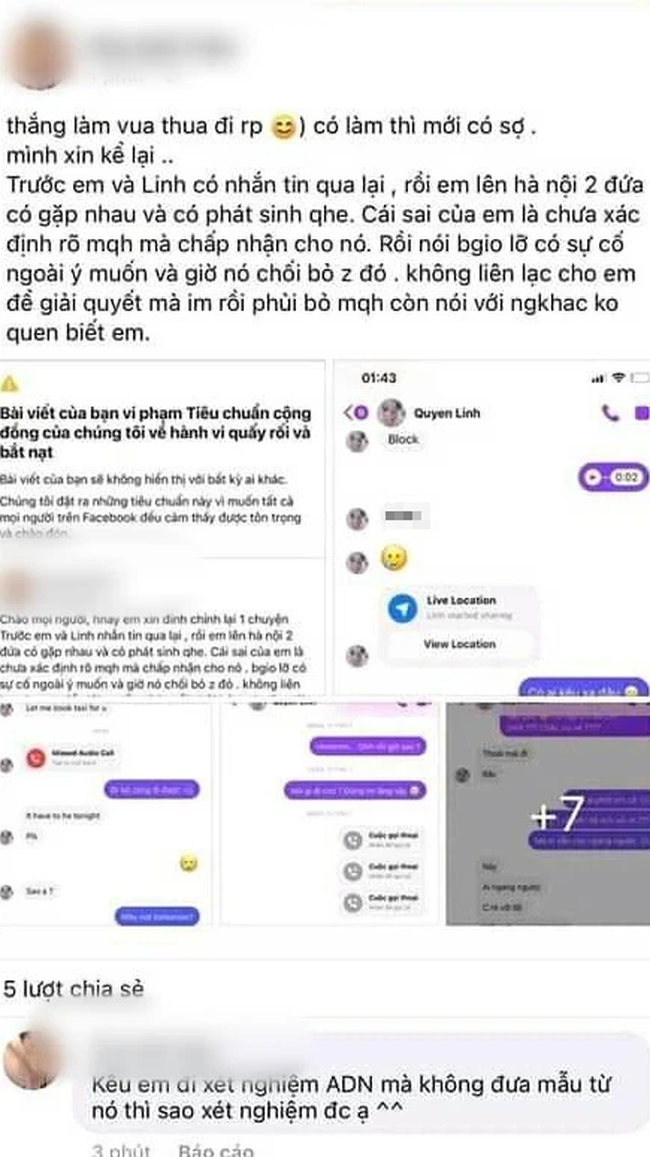 “Trước em và Linh có nhắn tin qua lại rồi em lên Hà Nội. Hai đứa có gặp nhau và phát sinh quan hệ. Cái sai của em là chưa xác định rõ mối quan hệ mà chấp nhận cho nó. Rồi bây giờ lỡ có sự cố ngoài ý muốn và nó chối bỏ vậy đó. Không liên lạc cho em để giải quyết mà im rồi phủi bỏ mối quan hệ, còn nói với người khác không quen biết em”, cô gái viết.