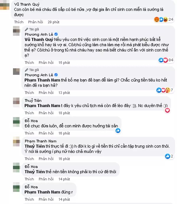 Trước những lời bình luận chói tai, cựu hot girl Hà thành chẳng ngại đáp trả. Cô cho hay: "Nếu yêu con thì việc sinh con là một niềm hạnh phúc bất kể sướng khổ hay là vợ ai.