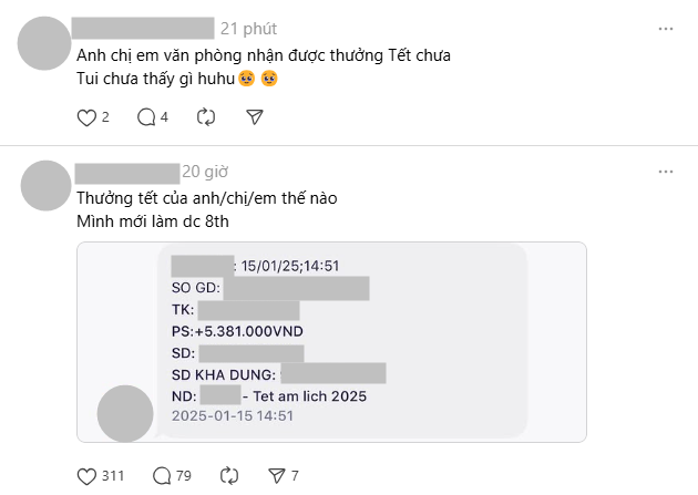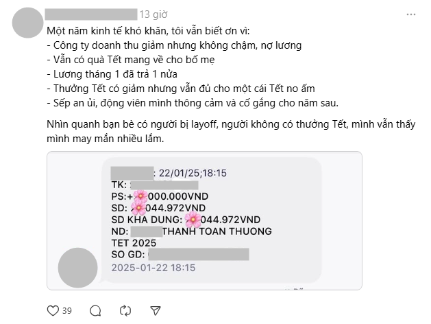 “Mông lung quá. Ngày 23 tháng Chạp rồi mà vẫn chưa thấy mặt mũi lương và thưởng Tết đâu. Tết này lấy gì tiêu giờ mọi người?”.