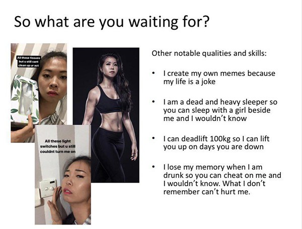 Hiểu được điều này nên cô bạn 26 tuổi Kelly Lim ở Singapore, đã quyết định làm mới profile Tinder để có thêm nhiều "lượt quẹt phải".