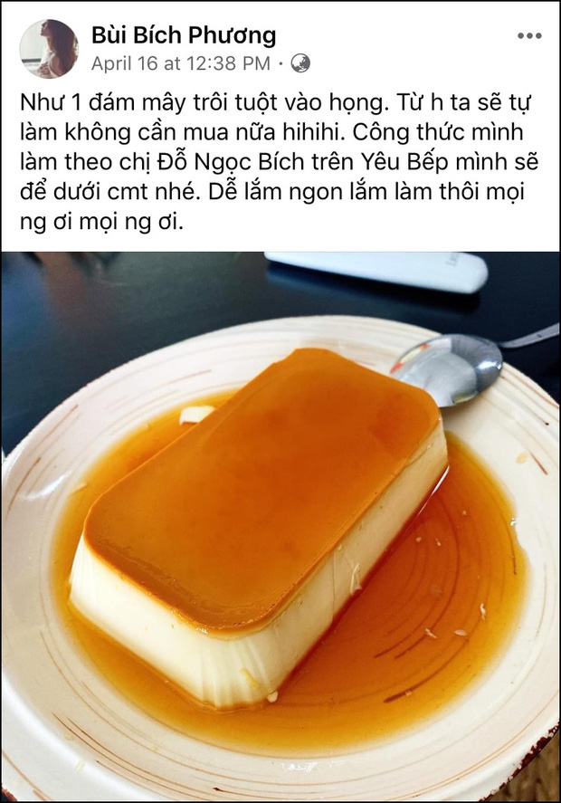 Không chỉ nấu được những mâm cơm hấp dẫn, Ngọc Bích còn thường xuyên làm những món ăn tráng miệng để mời bạn bè và người thân thưởng thức.