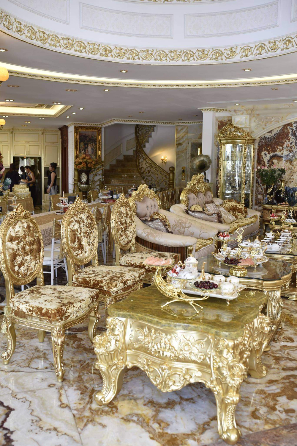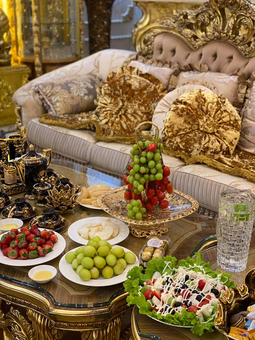 Theo đó, căn biệt thự thường được P.A chia sẻ nhiều nhất được thiết kế theo lối cổ điển, với nhiều đồ nội thất cầu kỳ, chọn tông vàng chủ đạo. Gia chủ cũng chọn nhiều đồ đắt tiền để bày biện.