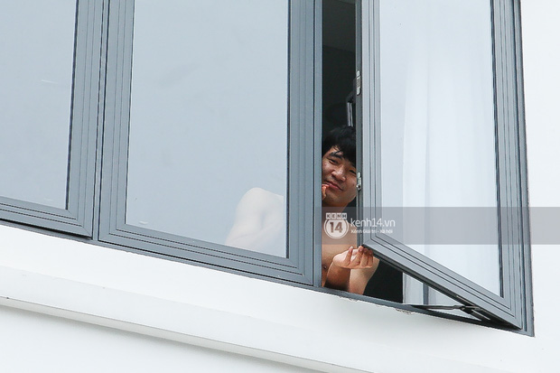 Lấp ló bên khung cửa sổ, "anh Thanhhh" và Chinh "đen" vừa xếp đồ vừa không quên ngó xuống nhìn cảnh gia đình Tiến Linh sum họp bên dưới. Văn Thanh diện tank top, đeo khuyên tai cực manly còn Chinh "đen" thì thậm chí còn không mặc áo để khoe múi. Cả hai còn hào hứng vẫy tay "bye bye" khi Tiến Linh lên xe trở về.
