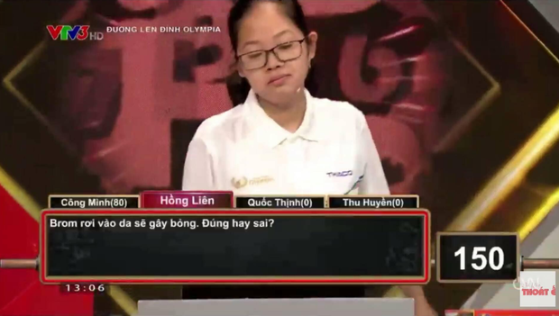 Không biết có phải vì liên tiếp dẫn đầu đoàn leo núi với số điểm cực cao, hay tự tin với vốn kiến thức của mình mà Hồng Liên đã có những biểu cảm kiểu "thi Olympia dễ ợt ấy mà" trên sóng truyền hình.