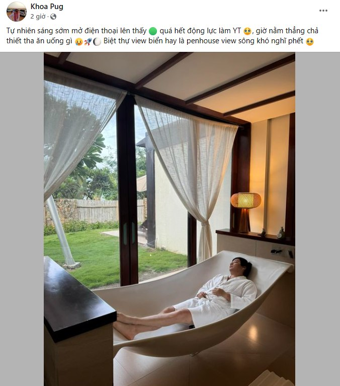 Chàng Youtuber sinh năm 1992 cũng từng thở than rằng bản thân "hết động lực làm Youtube". Nguyên nhân có lẽ không phải công việc xuống dốc, bí ý tưởng mà là do anh chàng đang có quá nhiều tiền. Khoa Pug còn hóm hỉnh nói: "Việc khó không phải là căng mình gồng lỗ, mà là gồng lời".