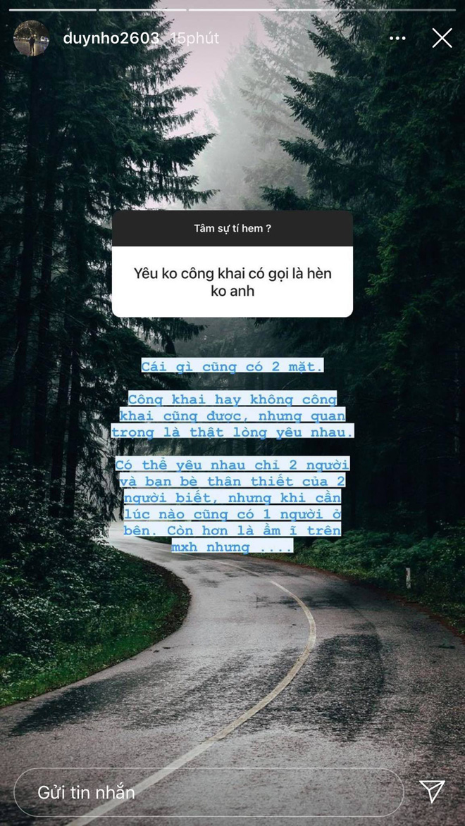 Về việc yêu công khai hay không công khai, Bụt chia sẻ quan điểm: "Cái gì cũng có 2 mặt. Công khai hay không công khai cũng được nhưng quan trọng là thật lòng yêu nhau. Có thể yêu nhau chỉ 2 người và bạn bè thân thiết của 2 người biết nhưng khi cần lúc nào cũng có 1 người ở bên. Còn hơn là ầm ĩ trên MXH nhưng..."