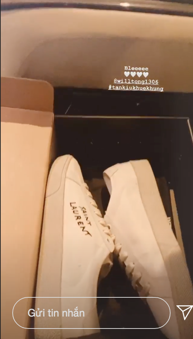 Ở một diễn biến khác, ngoài chiếc chìa khóa, dân tình còn để ý đến tủ đồ hiệu lấp ló phía sau trong story bạn gái Tống Đông Khuê đăng tải. Nào túi, nào giày cao gót, nào sneaker, nào trang sức... tuy không soi rõ được thương hiệu nào nhưng ai nấy đều cá rằng chúng đều là đồ hiệu đắt đỏ, nhìn vô đã thấy "mùi tiền". Mọi người thậm chí còn ngồi thử đoán xem bao nhiêu trong số chúng là quà Tống Đông Khuê tặng nữa.