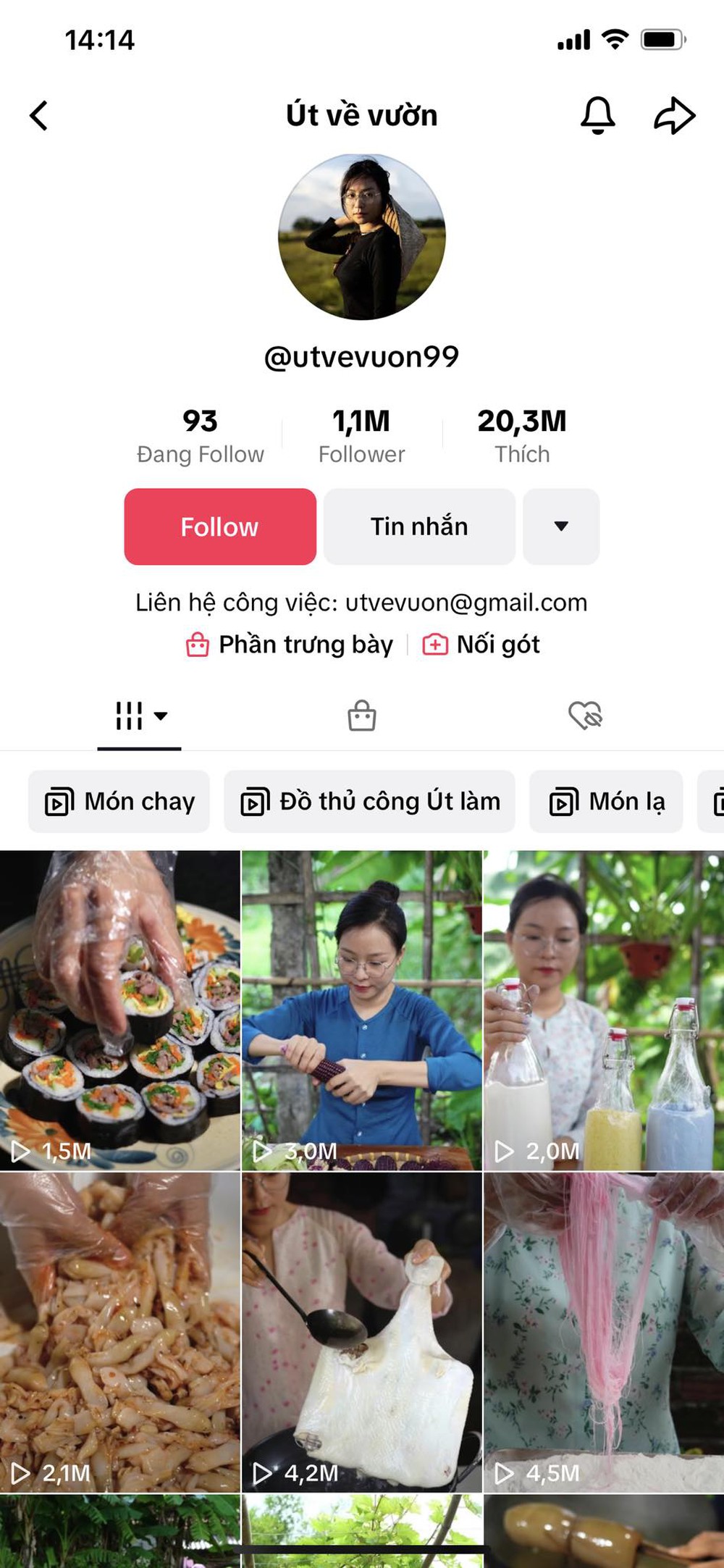 "Clip trên kênh "Út về vườn" của em xoay quanh cuộc sống thường ngày ở quê như trồng rau, thu hoạch cây trái, làm bánh, nấu các món ăn địa phương hay mâm cơm nhà...