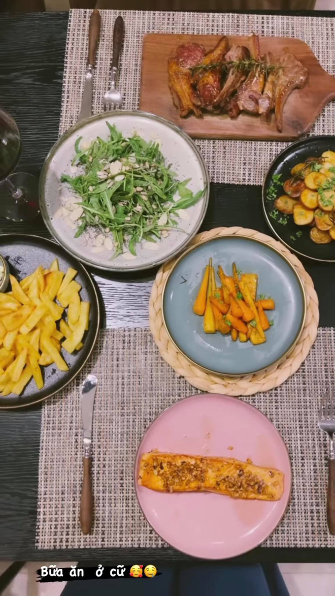 Đương nhiên đây cũng là một chủ đề được nhiều người quan tâm bởi không biết cơm cữ của dâu hào môn ra sao. Đáp án là Phanh Lee ăn tối như bình thường với cá hồi, sườn nướng, khoai tây bỏ lò, cà rốt, khoai tây chiên và salad rau rocket.