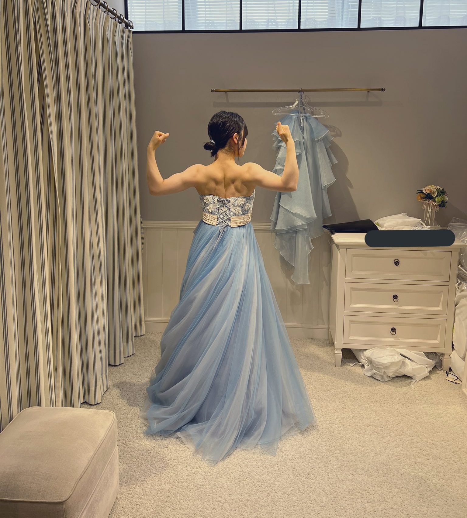 Cô bạn chia sẻ bức ảnh trên X (trước đây là Twitter) kèm dòng trạng thái: “Cơ lưng khá đô của tôi vẫn trông rất tuyệt vời khi tôi khoác lên mình bộ váy cưới”. Cô dâu này cũng cho hay rất vui và bất ngờ khi có nhiều người quan tâm đến bức hình thử váy cưới của cô đến vậy.