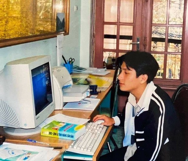 Thầy Khải chia sẻ về bức hình: "Vừa mới tốt nghiệp, ra Hà Nội làm biên phiên dịch cho giám đốc Hàn Quốc trong một dự án lắp đặt mạng truyền hình. Nhìn mình hồi đó cũng cưng?".
