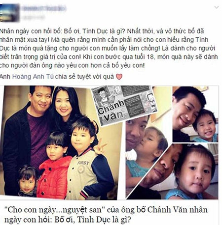 Anh Lưu Thanh cũng bình luận: "Hôm trước bị con trai hỏi mấy "thuật ngữ" tế nhị, mình né luôn, còn nổi cáu với con nữa chứ, vì con trai mình mới 12 tuổi thôi. Thằng bé xịu mặt ra bảo: bố không trả lời thì để con search google vậy. Chẳng biết thằng bé có làm thế thật không, nhưng sau đấy không thấy nó hỏi lại nữa. Tự dưng đọc bài này, mình lại thấy có lỗi với con quá!"
